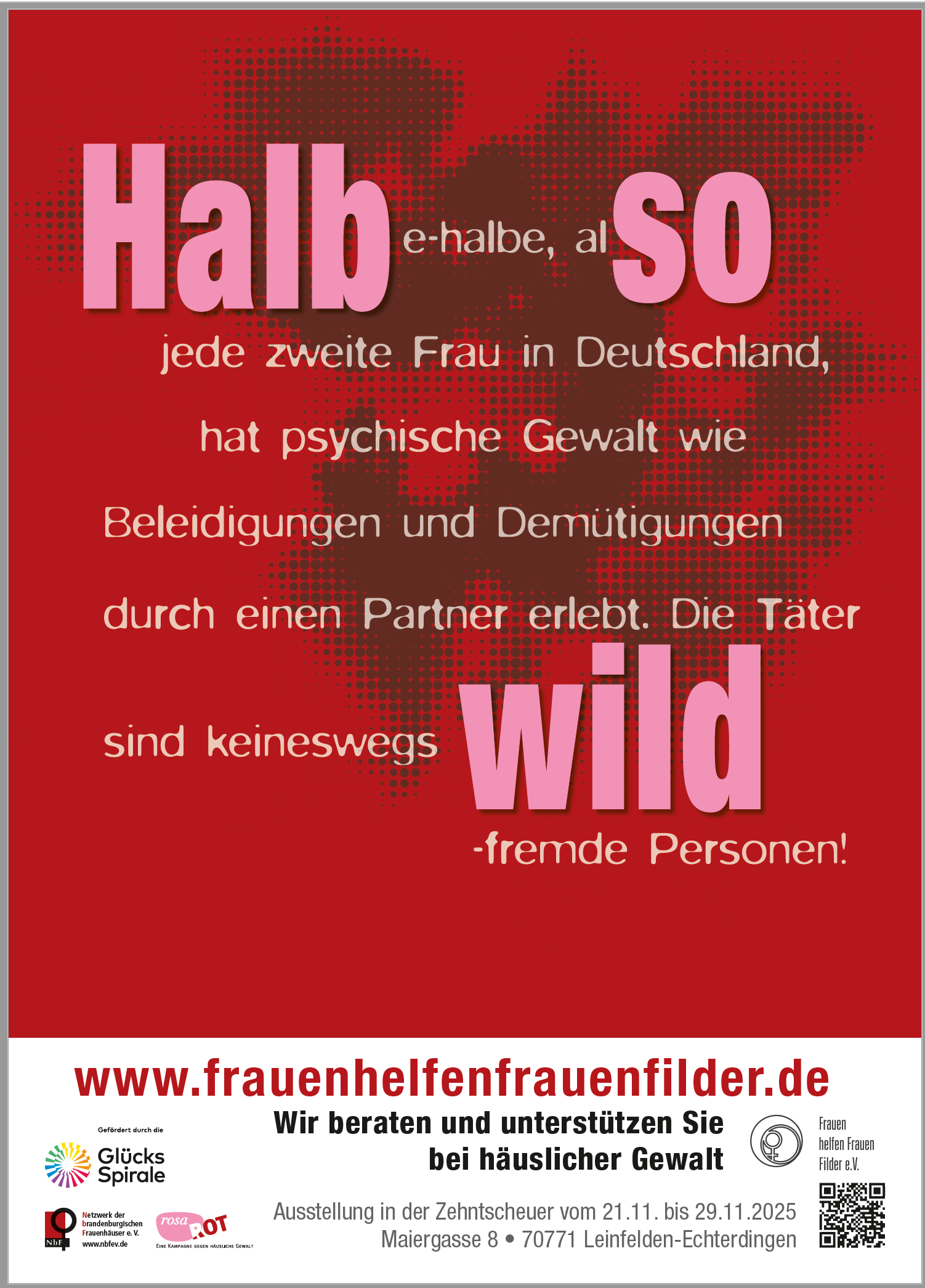 Der Verein Frauen helfen Frauen Filder e.V. bietet den Betroffenen Schutz, Hilfe und Auswege, offeriert Unterstützung und verschiedene Hilfsangebote. Dank dieser Hilfe kann das Gefühl von Angst und des sich hilflos ausgeliefert Seins langsam weichen und wieder Hoffnung auf ein Leben in Sicherheit entstehen!
