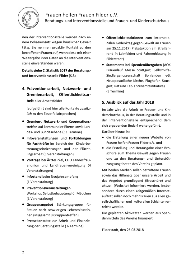 Im Jahr wird die Arbeit im Frauen- und Kinderschutzhaus,