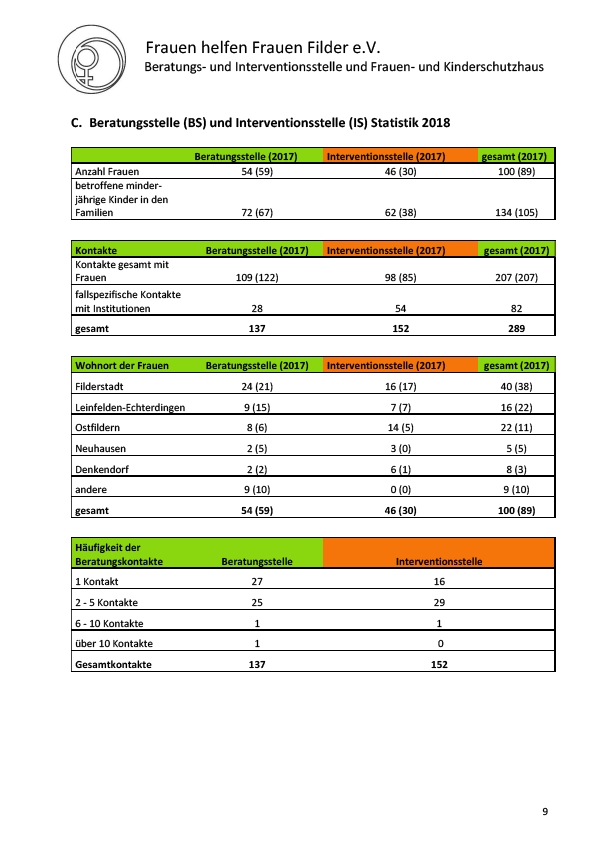 C. Beratungsstelle (BS) und Interventionsstelle (IS) Statistik 2018
