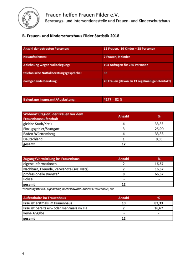 B. Frauen- und Kinderschutzhaus Filder Statistik 2018