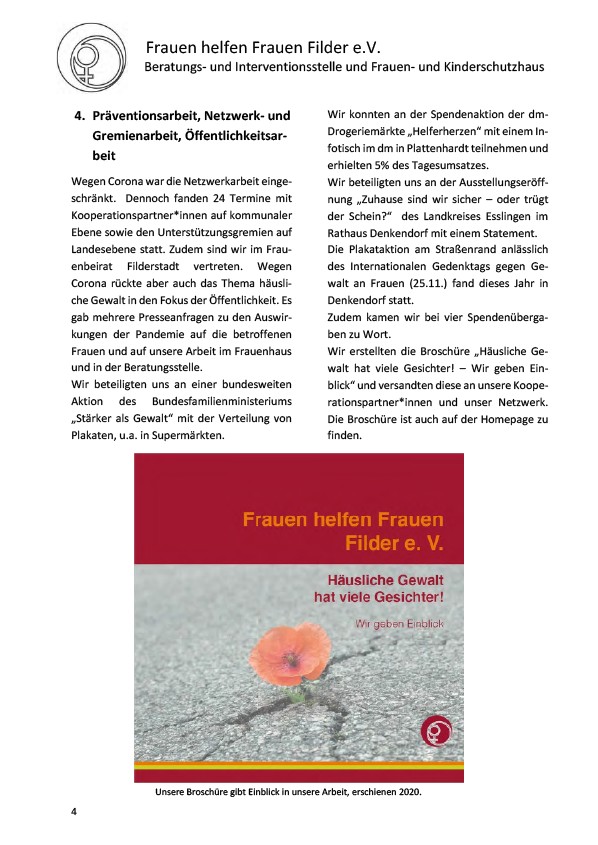 Frauen und auf unsere Arbeit im Frauenhaus